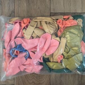 Gold, green, pink, orange and tan balloons