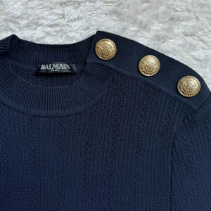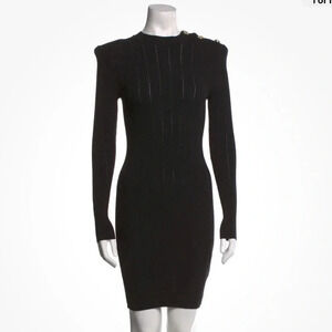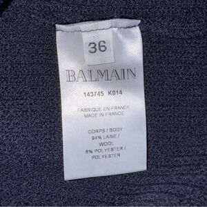 New Balmain Navy Blue Knit Long Sleeve Mini Dress Gold Buttons 36 Stretchy