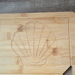 New Bamboo Cutting Board with Shell Design Carved In It