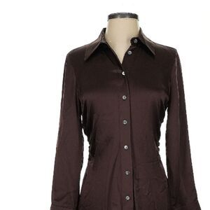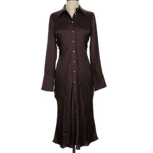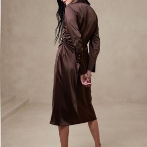 New Banana Republic Brown Enchant 100% Silk Long Sleeve Shirtdress Size XS