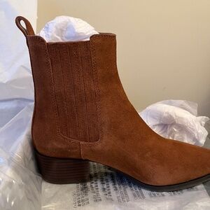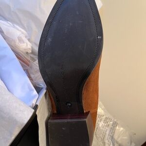 New item however, scuffs on sole from possibly being tried on inside, or display item, etc., gussets at side ankle
