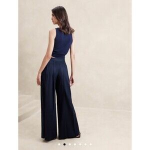 New Banana Republic Linen Blend Pleated Palazzo Wide Leg Pants Size 10 Black NWT