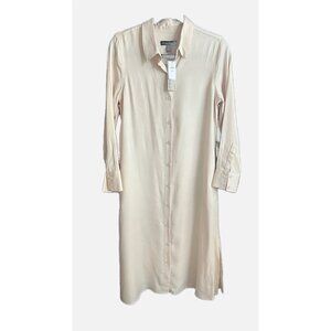 New! Banana Republic Tencel Midi Shirtdress in Light Ecru White.