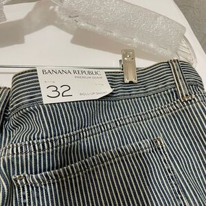 New Banana Republic Roll-Up Shorts Stripe Premium Denim Jean Size 32
