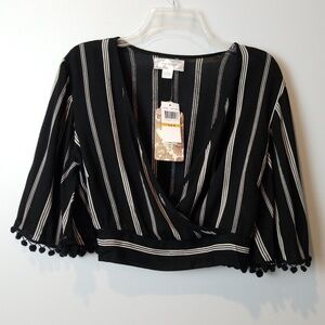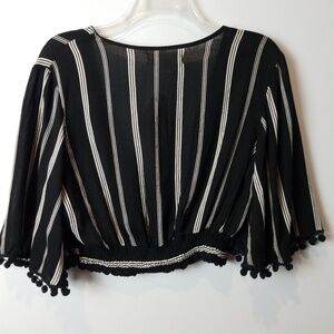 New Band Of Gypsies Striped Boho black white Crop Top SMall
