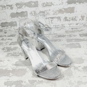 New Bandolino Armory 3 Silver Open Toe Ankle Strap Heeled Sandals D45