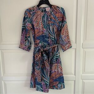 Banjanan Irene Multicolor Floral Print Belted Waist Mini Dress Size XS