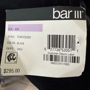 New Bar lll Black And White Collection Slim Fit Black Velvet Blazer Size 42 R