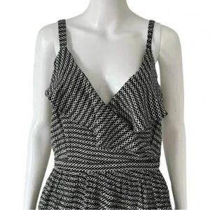 New Bar lll Dress Fit and Flare Ruffled Sleeveless Black White Sz, 10