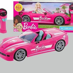This is a New In Box, never-opened BARBIE Remote Control (RC) Pink Convertible Car with Lights. This incredible toy is official BARBIE merchandise and is distributed by the Just Play company. Here is some additional detail for this item