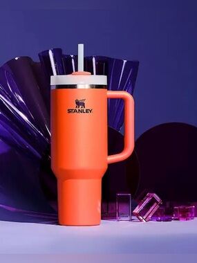 Vibrant pink tumbler by Stanley. Features a gold lid. Perfect for fans and collectors.