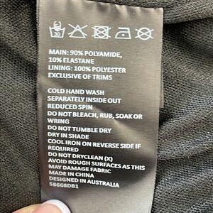 - Fabrication: Main: 90% Polyamide, 10% Elastane. Lining: 100% Polyester. (Exclusive of Trims)