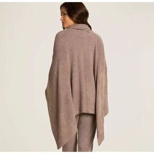 New Barefoot Dreams CozyChic Lite Knit Wrap Poncho Driftwood Tan One size