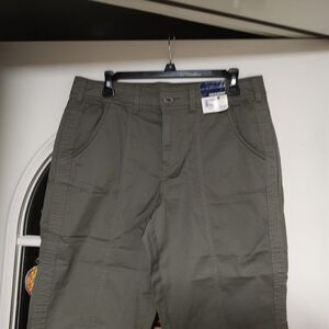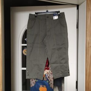 New with tag basic editions utility capri size women's M. They are green inseam 20 inches rise 11 inches button with zipper.