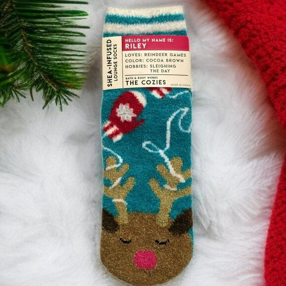 New Bath & Body Reindeer Cozies Shea-Infused Lounge Socks NonSlip Christmas Gift
