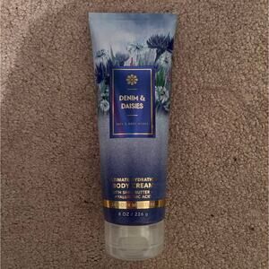 Bath and Body Works Denim and Daises Collection, comes with both products as shown, both new have never been used, full sized 8 fl oz, fragrance notes: sweet daises, sun-soaked denim, summer citrus