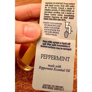 No longer sold in stores! New with tags Bath & Body Works .8 fl oz Peppermint scented Wallflower home fragrance refill. Made with Peppermint oil. Provides weeks and weeks of effortless fragrance. Bundle this item with the fragrance melts in my closet to save.