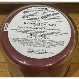 The New Bath & Body Works The Perfect Christmas 14.5 oz Candle is a large, round jar/container candle that is perfect for the holiday season. The candle features a family and friends theme, with a traditional style and scented fragrance. Made with a wax blend and soy wax, this candle is ideal for any room in the home. With multiple wicks, it will provide a cozy and inviting atmosphere for the Christmas season.