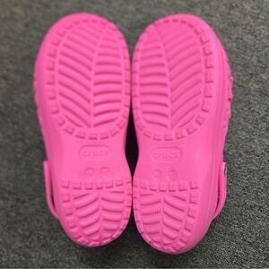 The Baya Platform Crocs in Pink are a stylish and comfortable choice for women in size 10. This slip-on shoe features a low top design with a round toe shape and a flat heel style, making it perfect for casual or travel occasions. Made of rubber, these clogs have a solid pink color with a classic theme, and are ideal for the summer, fall, and spring seasons. The brand Crocs ensures quality and durability, while the M width provides a comfortable fit for all-day wear.