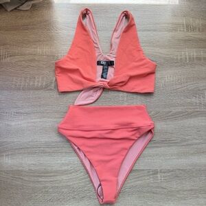 New Free People Beach Riot Dallas Ribbed Bikini Set Top Bottom High Rise Tie in Peachberry