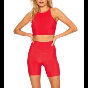 New Beach Riot Red Ribbed Biker Shorts Anna crop tank top set S