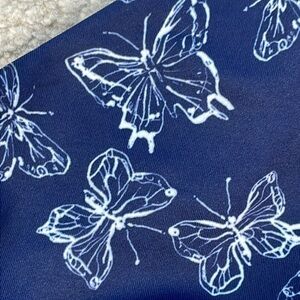 Spaghetti strap sport top with butterfly detailing, a deep v-neckline and ruffle trim. Features adjustable straps and a true to size fit.