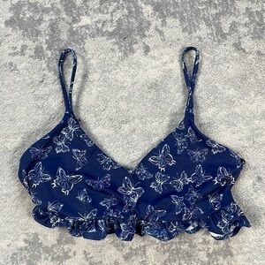 New Beach Riot Regina Bra Top Orchid Bloom Butterfly Ruffle Trim Blue Crop Sz L