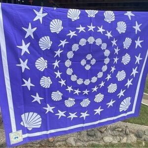 New Beach Road the Blanket Sheet Seashells Starfish Purple White 6’x6’