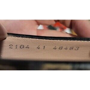 One of the shoes has a handwritten number written on the insole