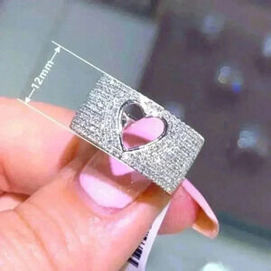 New Beautiful 14k Gold Over Silver Diamond Love Heart Cutout Band
