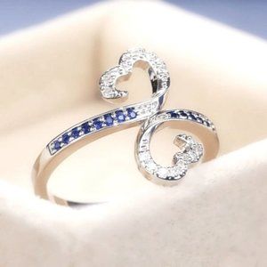 New Beautiful 925 Silver Diamond Blue Sapphire Heart Infinity Ring