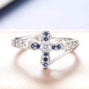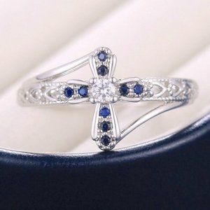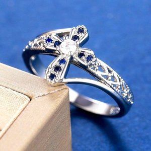New Beautiful 925 Silver Sim. Blue Sapphire Diamond Ring