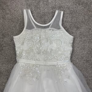 NWOT, Badgley Mischka Ariel Embellished Tulle Maxi Dress, white dress size 6X. Perfect for a First Communion or a flower girl for a wedding. This dress is beautiful. Great details.
