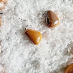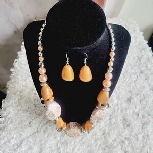 New! Beautiful neutral chunky stone necklace rust tan brown colors with earrings