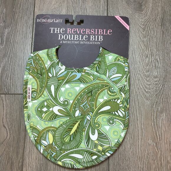 New Bebe Au Lait The Reversible Double Bib Magnetic Paisley Green