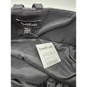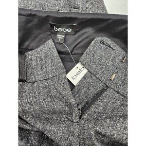 New Bebe Wool Silk Blend Pants Womens 0 Flared Leg Black Grey Tweed