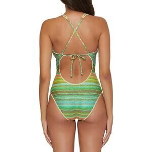 New Becca Womens Medium Scoop Neck Back Tie Striped Polka Dot One Piece Swimsuit