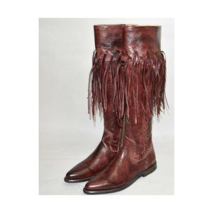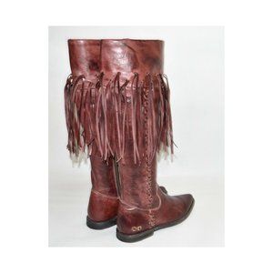 New! Bed Stu Hoplia Fringe Trim Riding Boot Scarlett Rust Red Leather Sz 8 DD293