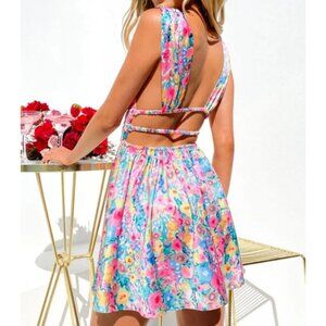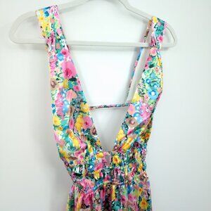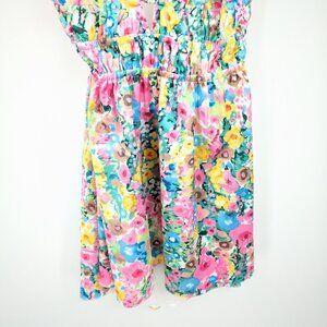 New Beginning Boutique Genovia Floral Mini Dress Women's 8 Pink Green Yellow
