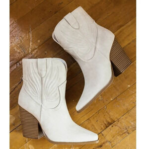 New! Beige Distressed Western Cowboy Block Heel Ankle Booties Boots