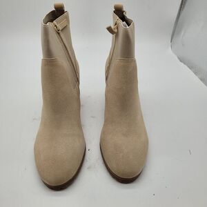 New Beige Leather ankle Boots Violet & Red Loaded Stacked Heel Neutral Size 8.5