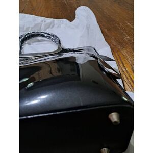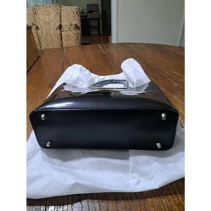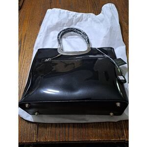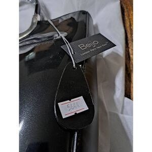 New With Tags Attached and Dust Cover Beijo #5644 Black Purse Handbag Shoulder Bag Pocket Book Satchel- Polyvinyl Treated with Pearlescent Finish Solid Pattern- Has the attached Short Handle and Longer Crossbody Type Strap