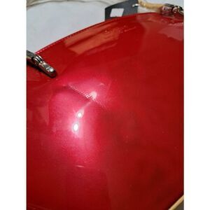 New With Tags Attached and Dust Cover Beijo Red/Berry and Tan Over the Moon Purse Handbag Shoulder Bag Pocket Book Satchel- Polyvinyl Treated with Pearlescent Finish Solid Pattern Crescent Shape