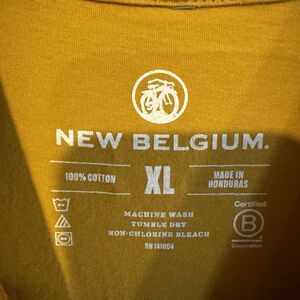 New Belgium Fat Tire Bottlecap XL T-Shirt Yellow Logo Bicycle Beer Caveman Music