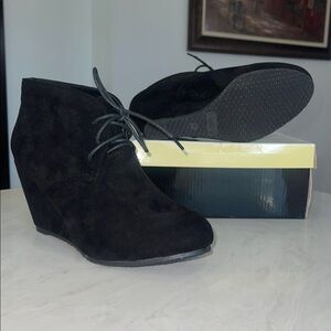 New! ✨ “Bella Marie” Suede Black Wedge Booties- Size 8
