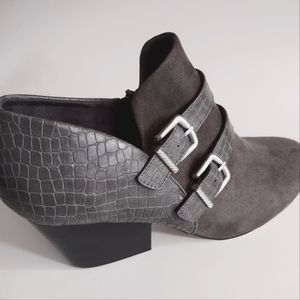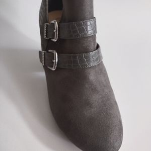 Bella Vita Size 12WW Gray leather/ velour fabric buckle detail heel comfort shoes