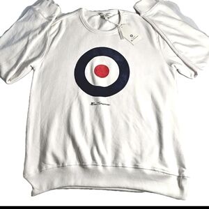 New Ben Sherman Men's White Target Print Medium Crew Neck Sporty Sweater