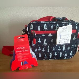 New Bentgo Kids Bundle Insulated Lunch Box Bag Crossbody Ice Packs Rockets