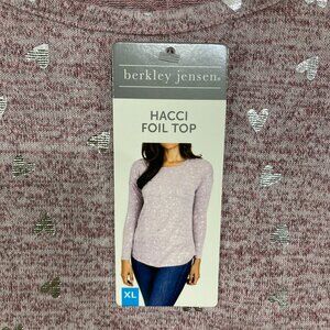New Berkley Jensen size XL Metallic Heart Print Soft Stretch Knit Casual Top