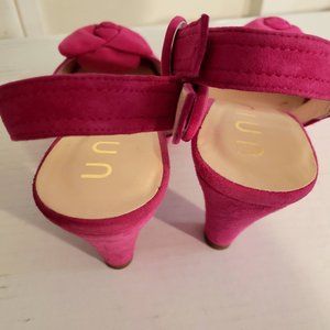 New Berry Pink Suede Flower Bow Pumps Slingback